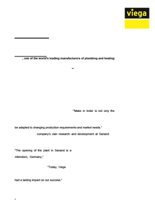Additionally, the company’s own research and development at Sanand will also focus on local product requirements. In this way, Viega intends to become a driving force for the plumbing and heating industry in India.
